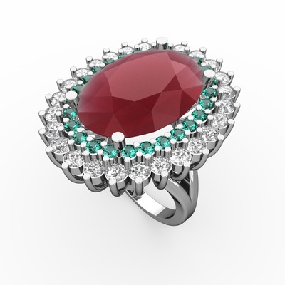 Kök yakut, yeşil kuvars ve swarovski 18 ayar beyaz altın yüzük