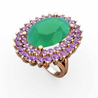 Kök zümrüt ve ametist 925 ayar rose altın kaplama gümüş yüzük