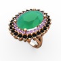 Kök zümrüt, ametist ve siyah zirkon 8 ayar rose altın yüzük