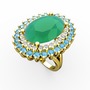 Kök zümrüt, beyaz zirkon ve akuamarin 14 ayar altın yüzük