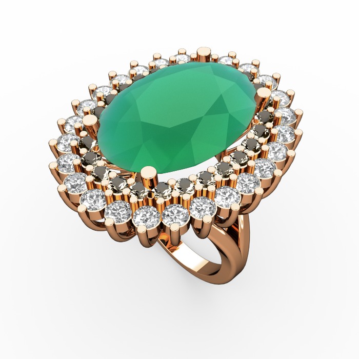 Kök zümrüt, dumanlı kuvars ve beyaz zirkon 14 ayar rose altın yüzük