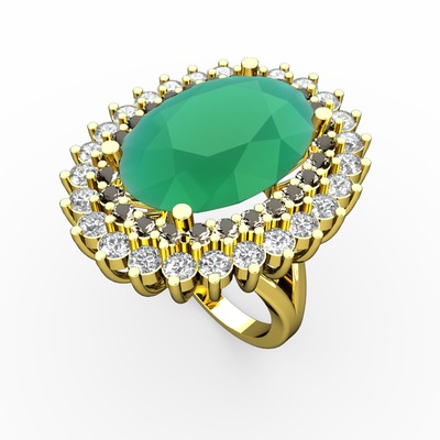 Kök zümrüt, dumanlı kuvars ve pırlanta 14 ayar altın yüzük (1.56 karat)