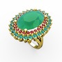 Kök zümrüt, garnet ve yeşil kuvars 925 ayar altın kaplama gümüş yüzük