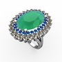 Kök zümrüt, lab safir ve dumanlı kuvars 18 ayar beyaz altın yüzük