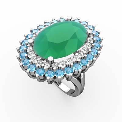 Kök zümrüt, pırlanta ve akuamarin 14 ayar beyaz altın yüzük (0.936 karat)