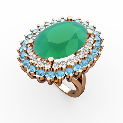 Kök zümrüt, pırlanta ve akuamarin 8 ayar rose altın yüzük (0.936 karat)