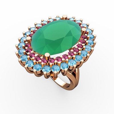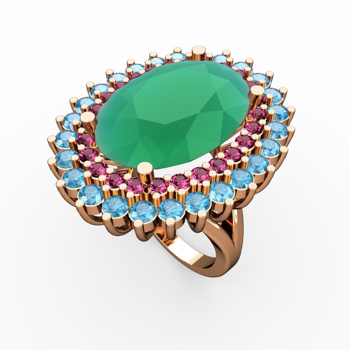 Kök zümrüt, rodolit garnet ve akuamarin 8 ayar rose altın yüzük