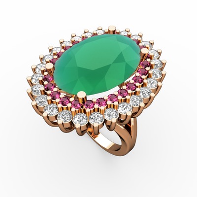 Kök zümrüt, rodolit garnet ve swarovski 14 ayar rose altın yüzük