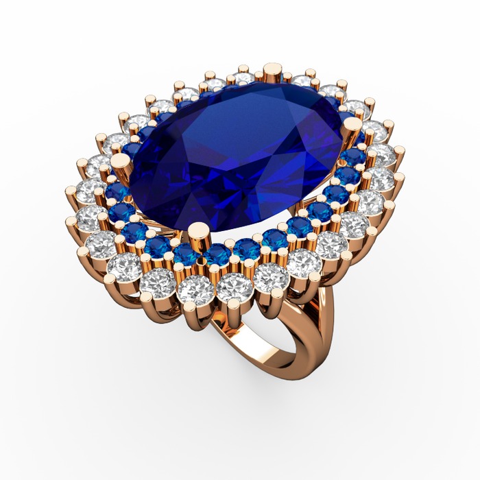 Lab safir ve beyaz zirkon 18 ayar rose altın yüzük
