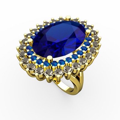 Lab safir ve dumanlı kuvars 18 ayar altın yüzük
