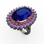 Lab safir, garnet ve ametist 925 ayar siyah rodyum kaplama gümüş yüzük