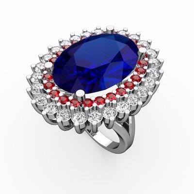 Lab safir, garnet ve beyaz zirkon 8 ayar beyaz altın yüzük