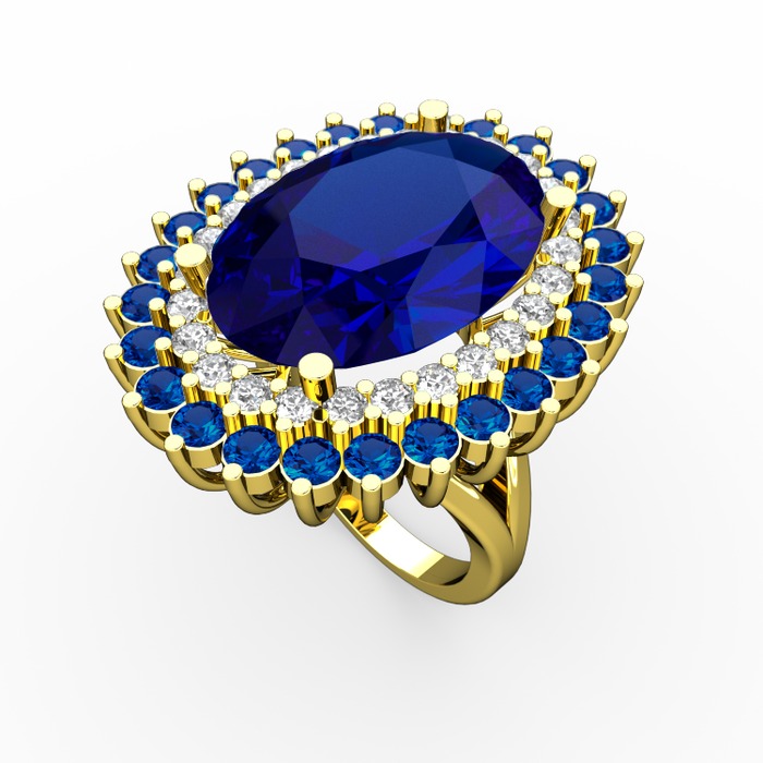 Lab safir ve pırlanta 14 ayar altın yüzük (0.936 karat)