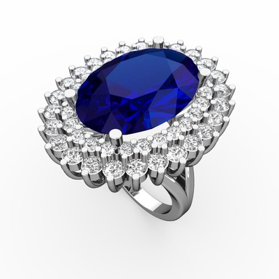 Lab safir ve pırlanta 14 ayar beyaz altın yüzük (2.496 karat)