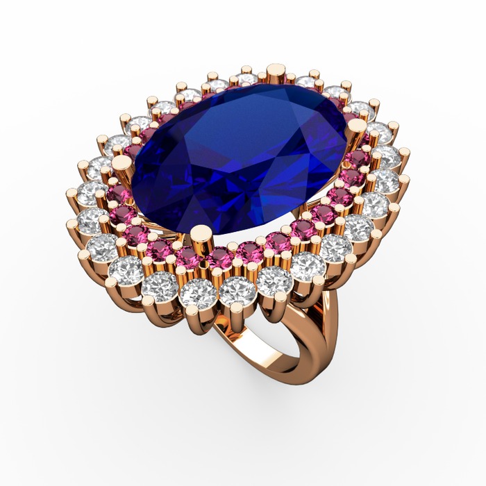 Lab safir, rodolit garnet ve beyaz zirkon 8 ayar rose altın yüzük