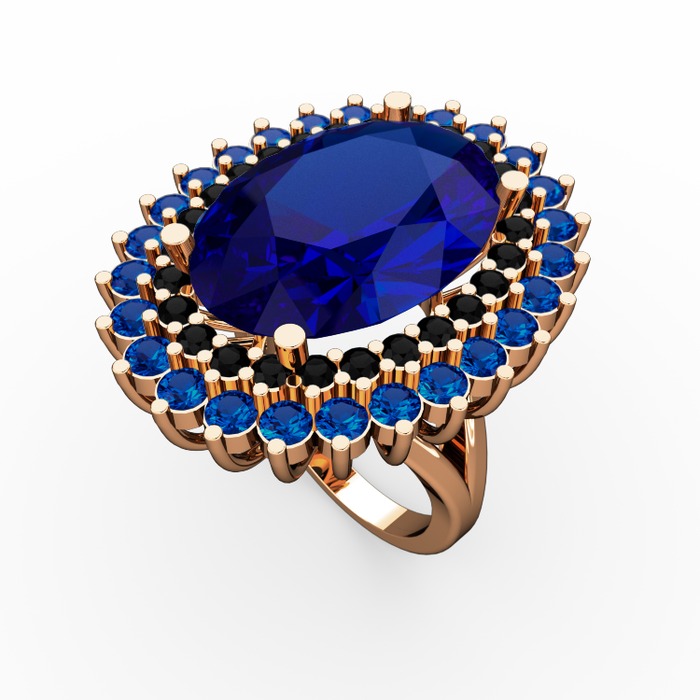 Lab safir ve siyah zirkon 14 ayar rose altın yüzük