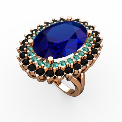 Lab safir, yeşil kuvars ve siyah zirkon 18 ayar rose altın yüzük