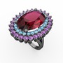 Rodolit garnet, akuamarin ve ametist 925 ayar siyah rodyum kaplama gümüş yüzük