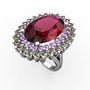 Rodolit garnet, ametist ve dumanlı kuvars 8 ayar beyaz altın yüzük