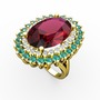 Rodolit garnet, beyaz zirkon ve yeşil kuvars 14 ayar altın yüzük
