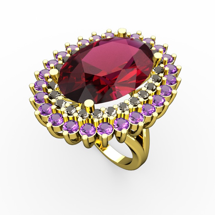 Rodolit garnet, dumanlı kuvars ve ametist 925 ayar altın kaplama gümüş yüzük