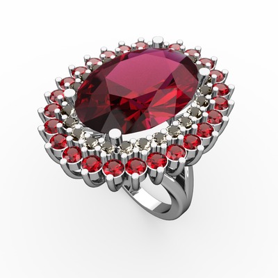 Rodolit garnet, dumanlı kuvars ve garnet 14 ayar beyaz altın yüzük