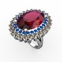 Rodolit garnet, lab safir ve dumanlı kuvars 14 ayar beyaz altın yüzük
