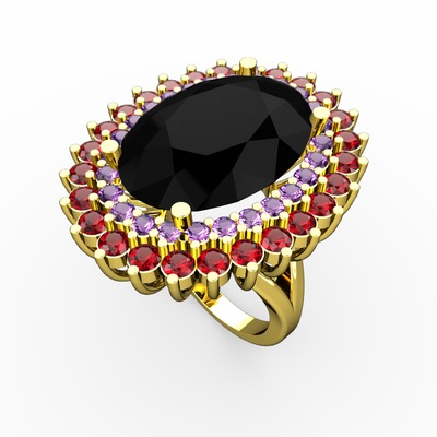 Siyah zirkon, ametist ve garnet 8 ayar altın yüzük