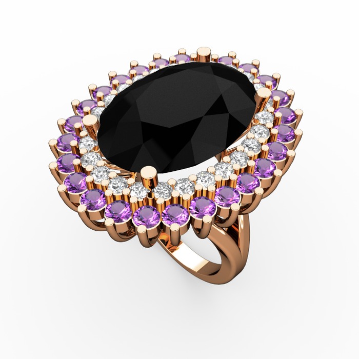 Siyah zirkon, beyaz zirkon ve ametist 925 ayar rose altın kaplama gümüş yüzük