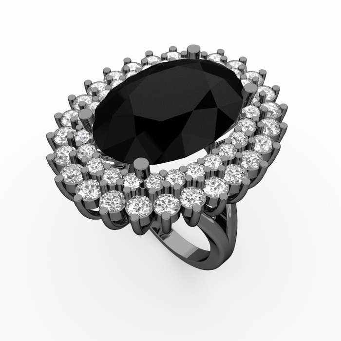 Siyah zirkon, beyaz zirkon ve pırlanta 925 ayar siyah rodyum kaplama gümüş yüzük (1.56 karat)