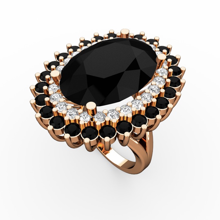 Siyah zirkon ve beyaz zirkon 925 ayar rose altın kaplama gümüş yüzük