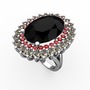Siyah zirkon, garnet ve dumanlı kuvars 18 ayar beyaz altın yüzük