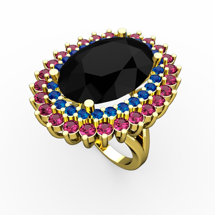 Siyah zirkon, lab safir ve rodolit garnet 925 ayar altın kaplama gümüş yüzük