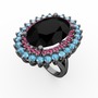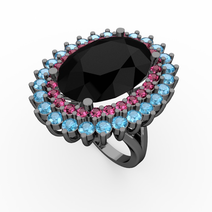 Siyah zirkon, rodolit garnet ve akuamarin 925 ayar siyah rodyum kaplama gümüş yüzük