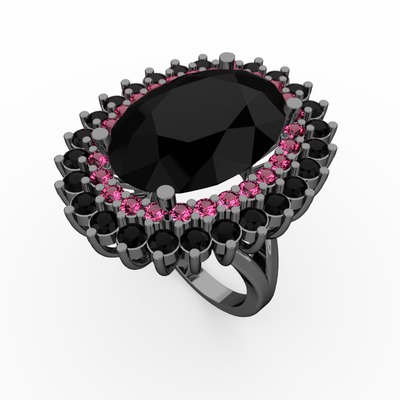 Siyah zirkon ve rodolit garnet 925 ayar siyah rodyum kaplama gümüş yüzük