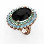 Siyah zirkon, yeşil kuvars ve akuamarin 925 ayar rose altın kaplama gümüş yüzük