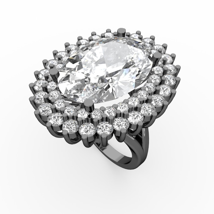 Swarovski, beyaz zirkon ve pırlanta 925 ayar siyah rodyum kaplama gümüş yüzük (1.56 karat)