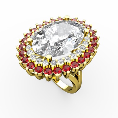 Swarovski, pırlanta ve garnet 14 ayar altın yüzük (0.936 karat)