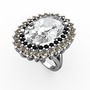 Swarovski, siyah zirkon ve dumanlı kuvars 8 ayar beyaz altın yüzük