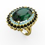 Yeşil kuvars, akuamarin ve siyah zirkon 925 ayar altın kaplama gümüş yüzük