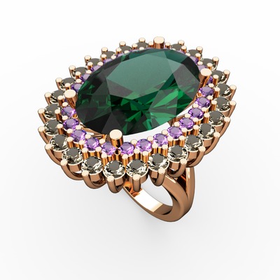 Yeşil kuvars, ametist ve dumanlı kuvars 8 ayar rose altın yüzük