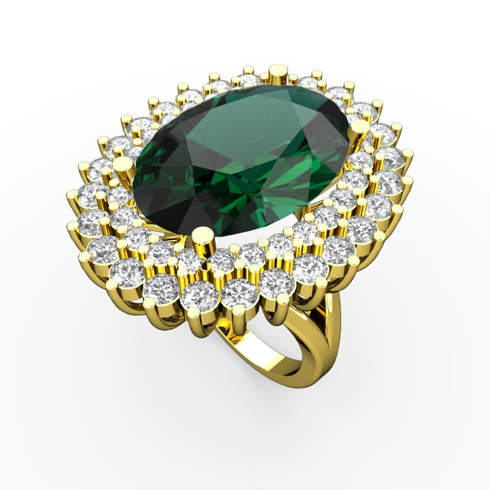 Yeşil kuvars, beyaz zirkon ve pırlanta 14 ayar altın yüzük (1.56 karat)