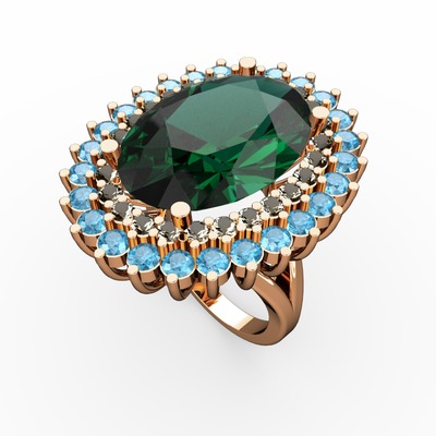 Yeşil kuvars, dumanlı kuvars ve akuamarin 8 ayar rose altın yüzük