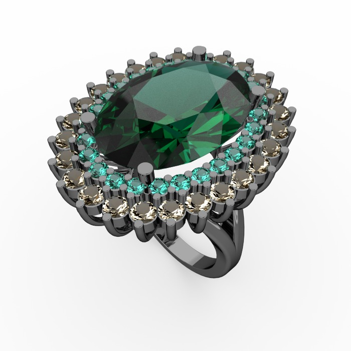 Yeşil kuvars ve dumanlı kuvars 925 ayar siyah rodyum kaplama gümüş yüzük