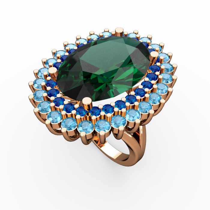 Yeşil kuvars, lab safir ve akuamarin 18 ayar rose altın yüzük