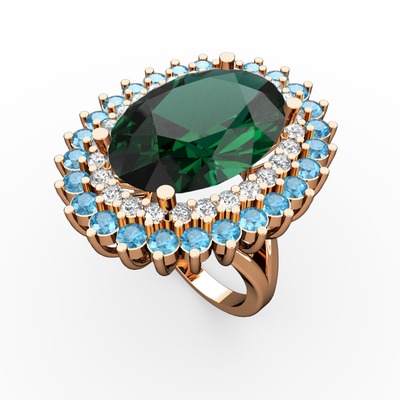 Yeşil kuvars, pırlanta ve akuamarin 18 ayar rose altın yüzük (0.936 karat)
