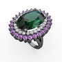 Yeşil kuvars, pırlanta ve ametist 925 ayar siyah rodyum kaplama gümüş yüzük (0.936 karat)