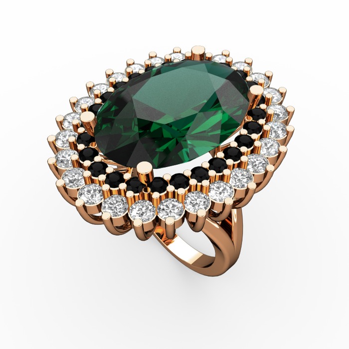 Yeşil kuvars, siyah zirkon ve pırlanta 14 ayar rose altın yüzük (1.56 karat)