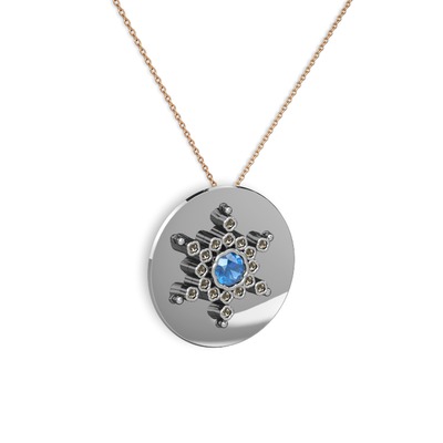 Akuamarin ve dumanlı kuvars 18 ayar beyaz altın kolye (40 cm rose altın rolo zincir)