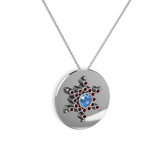 Akuamarin ve garnet 14 ayar beyaz altın kolye (40 cm gümüş rolo zincir)